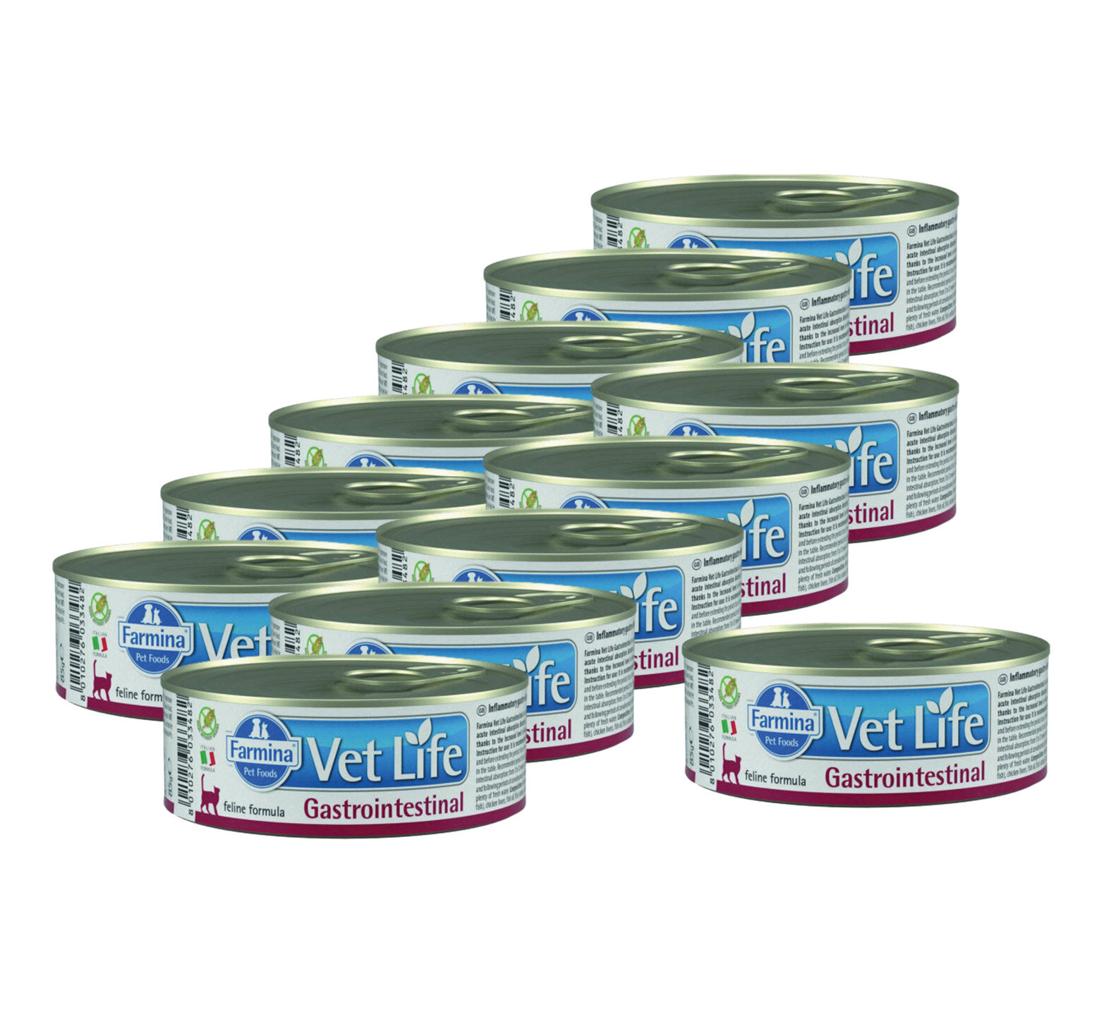 FARMINA VET LIFE FELINE GASTROINTESTINAL для взрослых кошек при заболеваниях ЖКТ 85 гр (85 гр х 12 шт)