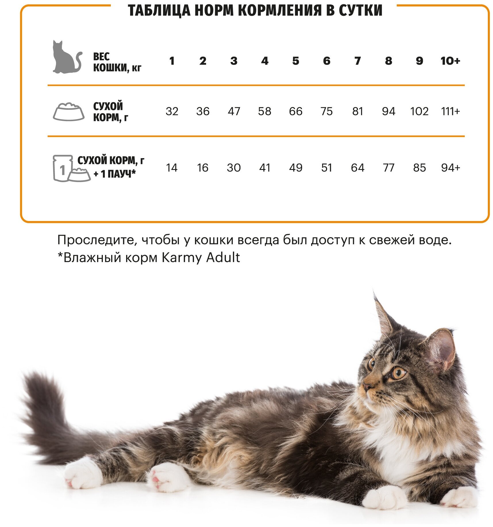 Сухой корм для кошек Karmy Hair & Skin, поддерживающий здоровье кожи и шерсти, с лососем, 10 кг