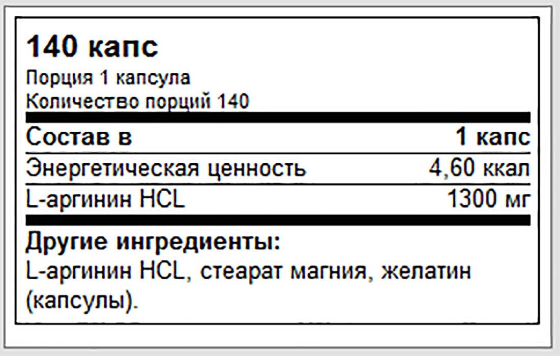 Аргинин. Аминокислота. Mega Arginine 140 caps.