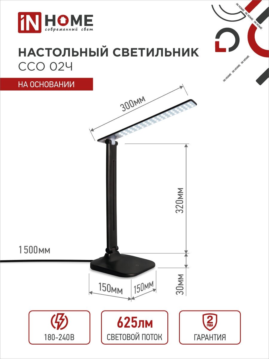 Светильник настольный светодиодный ССО 02Ч 10Вт 4000К 625лм сенсор-диммер адаптер черн. IN HOME 4690612013480 (1 шт.)