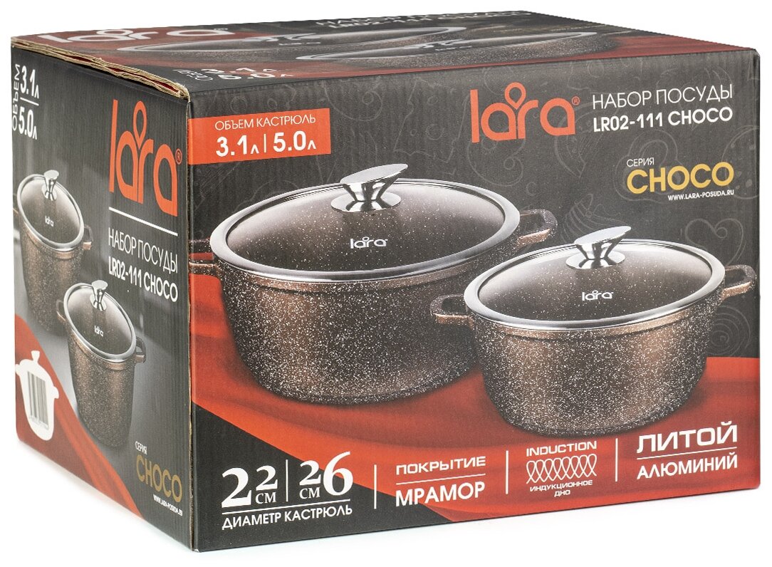 Кастрюля набор посуды lara choco lr02111 литой алюминий мрамор 2 пр кастр 31л + 50л ean:4680353011944