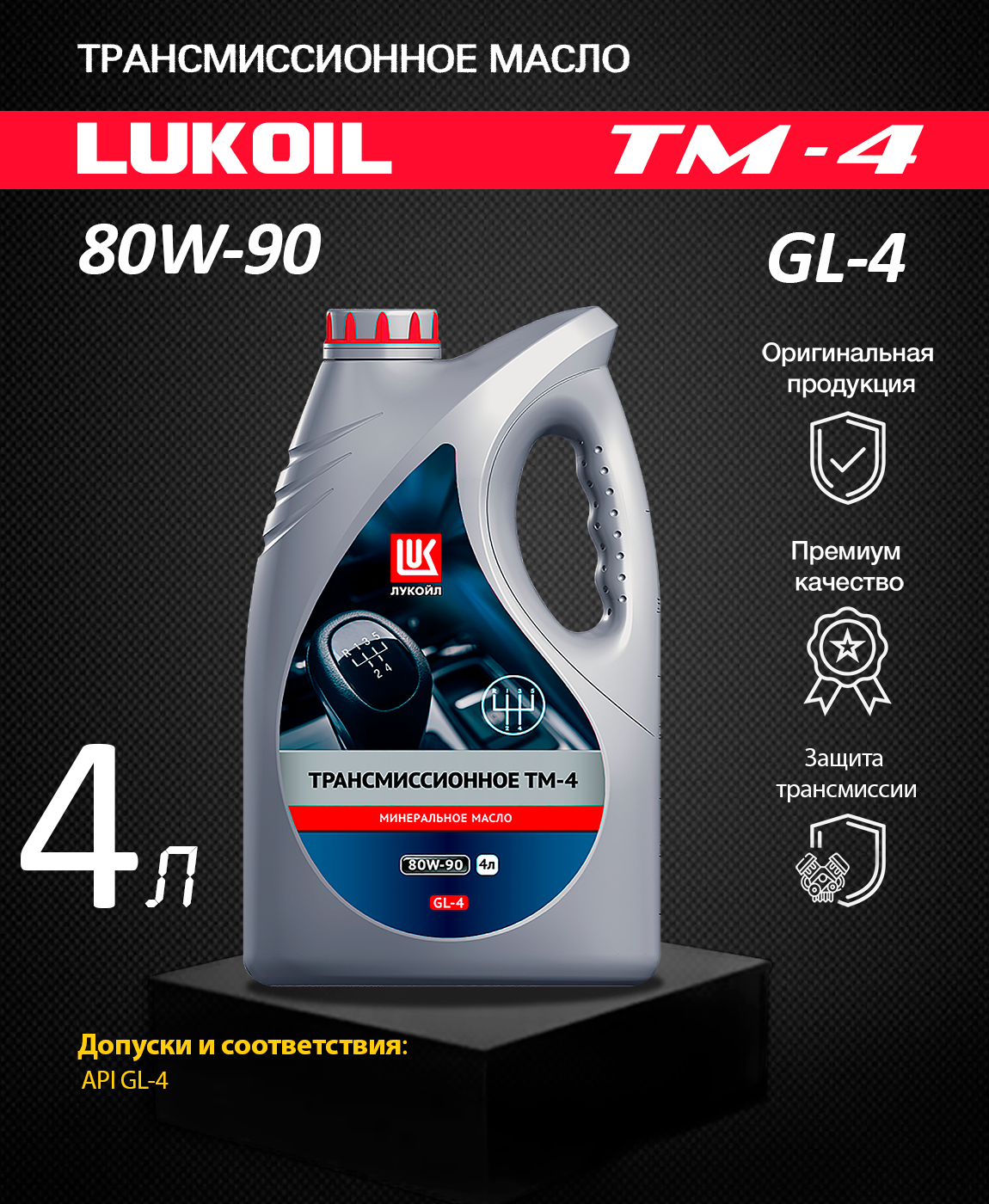 Масло трансмиссионное ЛУКОЙЛ трансмиссионное ТМ-4 SAE 80W-90, API GL-4 канистра 4 л