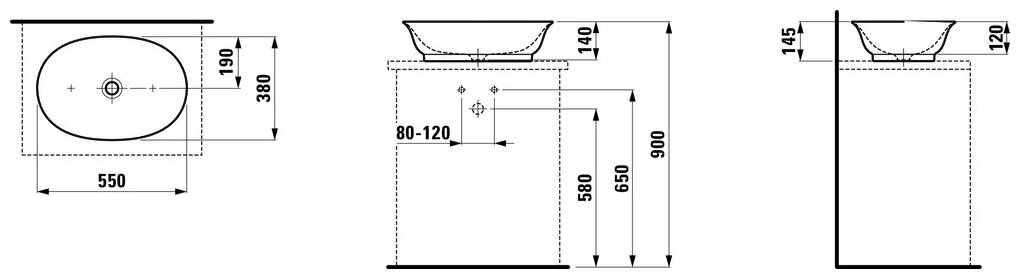 Laufen New Classic Раковина-чаша овальная 550х380х145 мм, без отв под смеситель,без перелива, цвет белый