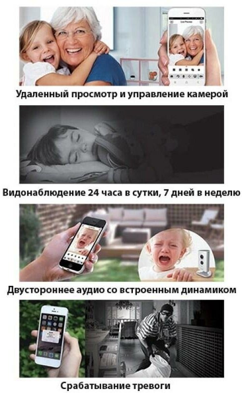 | Конструкция и возможности | датчик освещенности / детекция движения / микрофон / динамик обратной связи / мобильное приложение / оповещение о движении / тревожный вход/выход / 1 вход, 1 выход / / ИК подсветка / картридер / microSD до 128ГБ / |