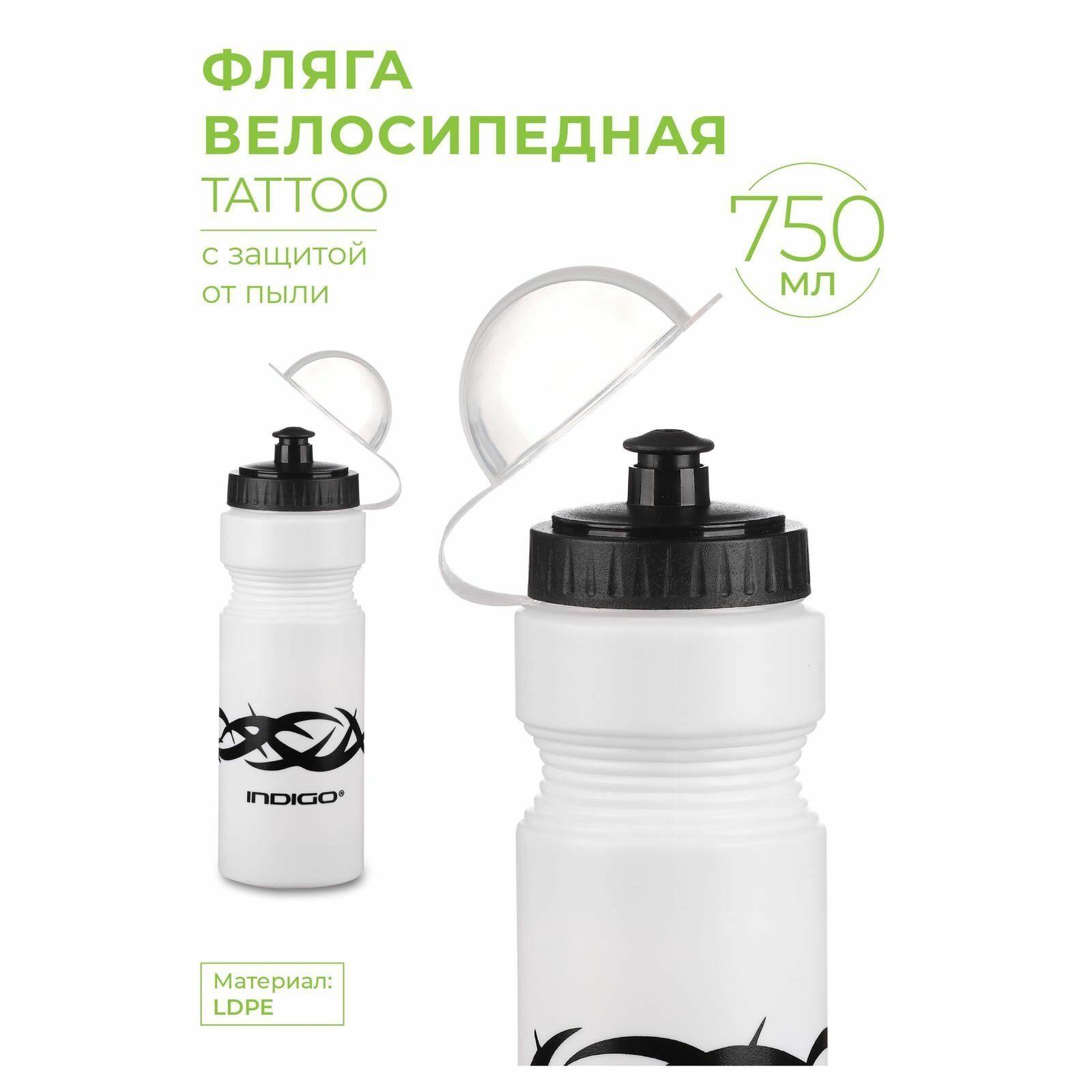 Фляги и бутылки Фляга велосипедная, Бутылка для воды велосипедная INDIGO TATTOO с защитой от пыли 750 мл