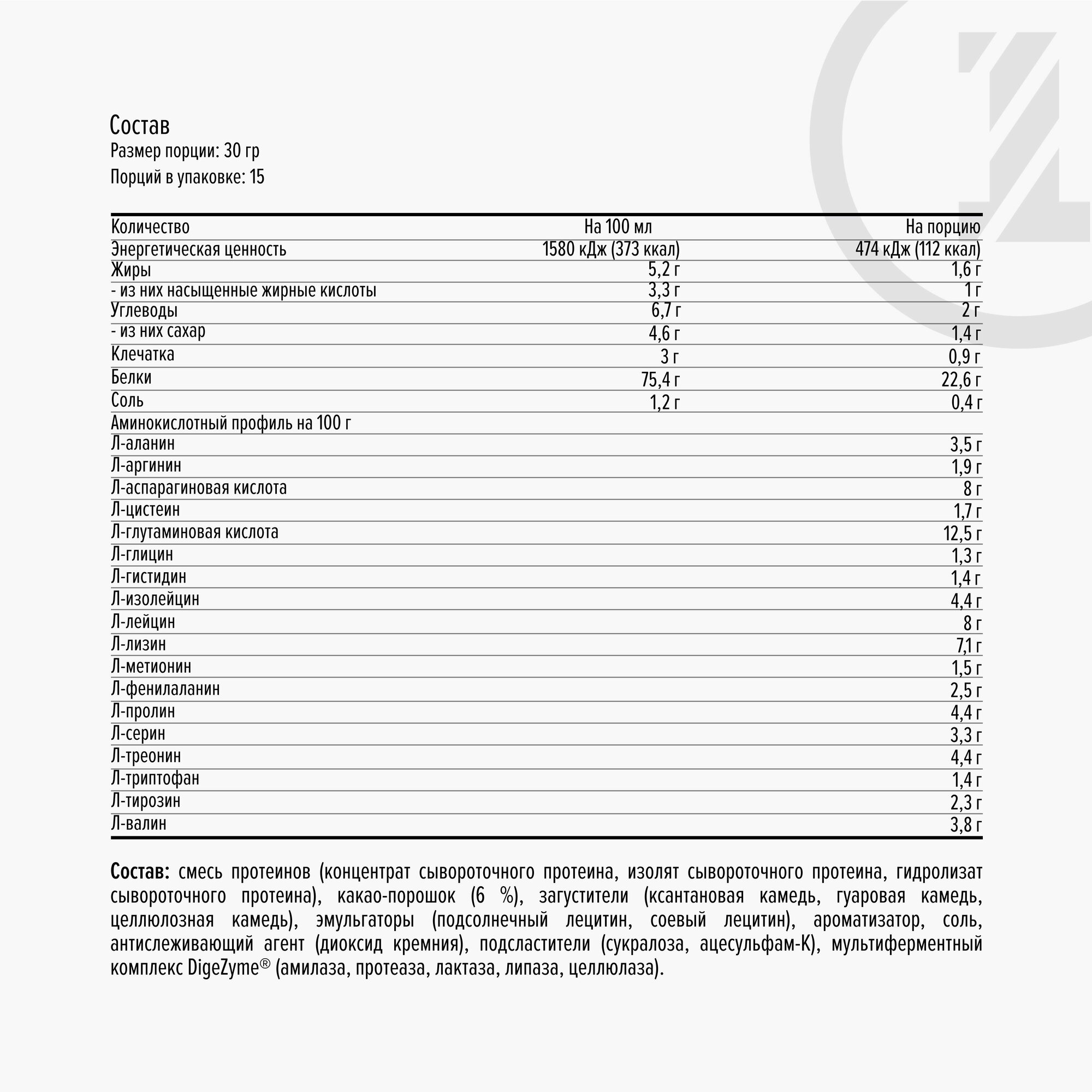 | Кол-во белка в порции | 32 г |