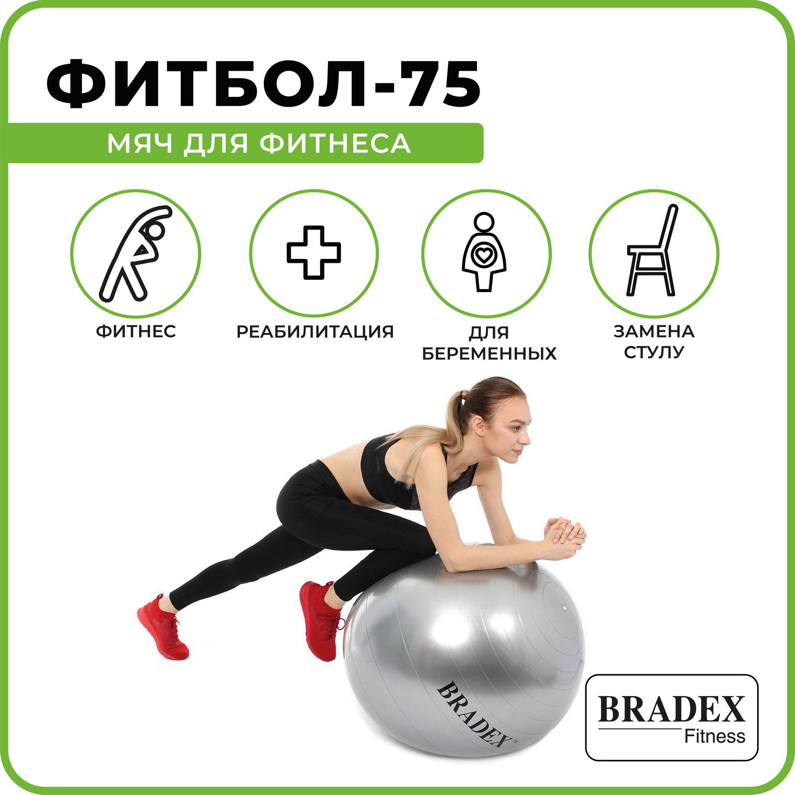 BRADEX Мяч для фитнеса «ФИТБОЛ-75»