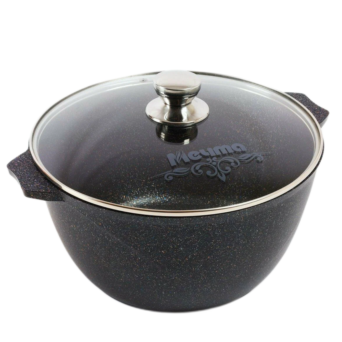 Кастрюля Мечта Гранит Black литая с антипригарным покрытием, со стеклянной крышкой, 6л, гранит black
