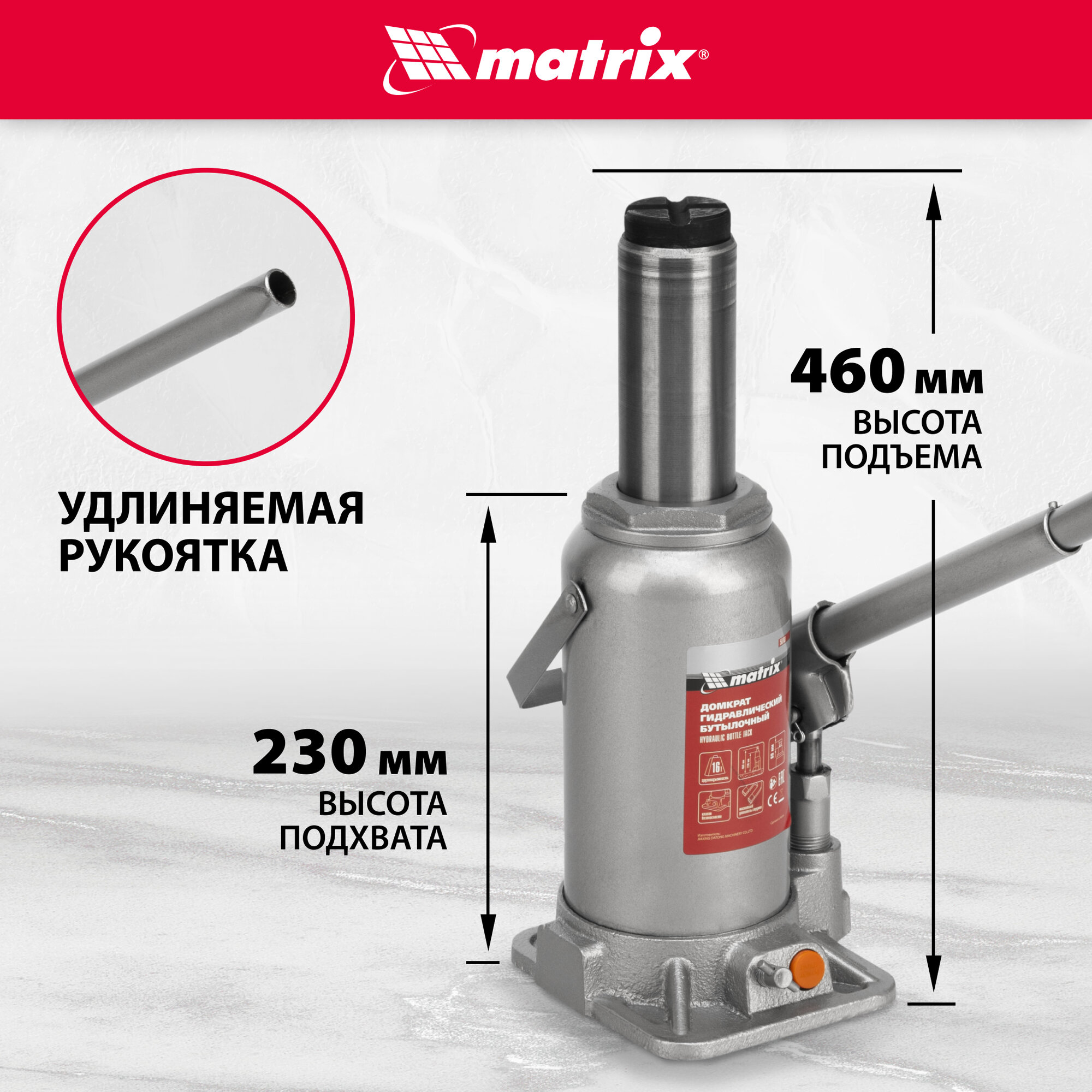 Домкрат Домкрат гидравлический бутылочный, 16 т, h подъема 230-460 мм Matrix [50769]