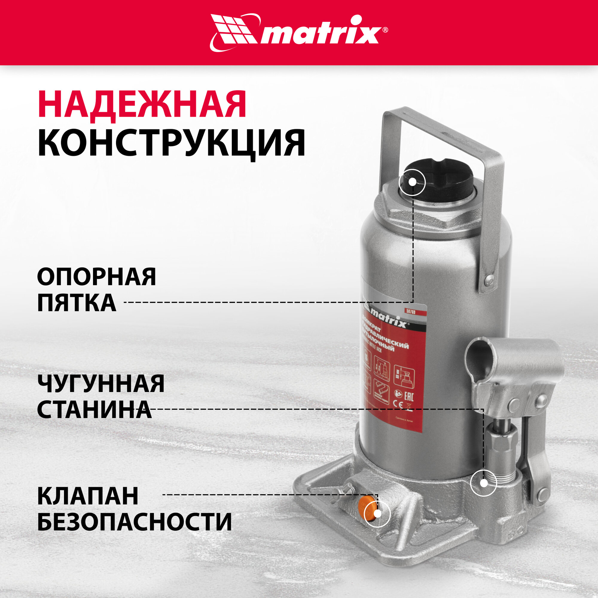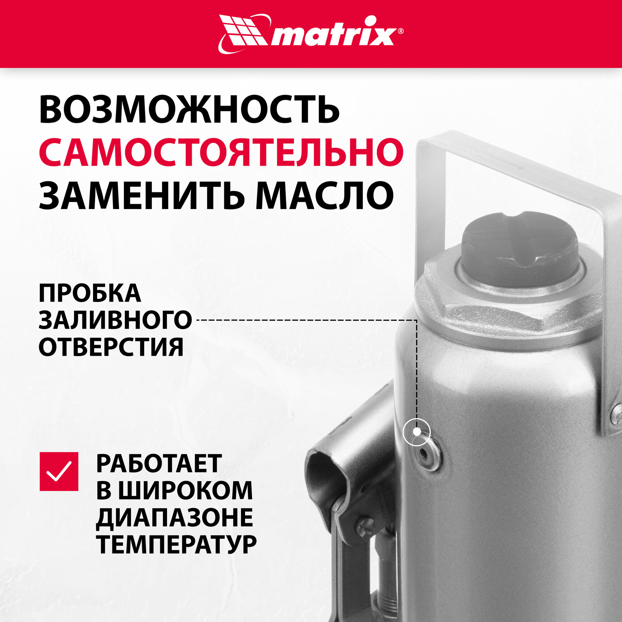 Домкрат гидравлический бутылочный Matrix 16 т, h подъема 230–460 мм 50769