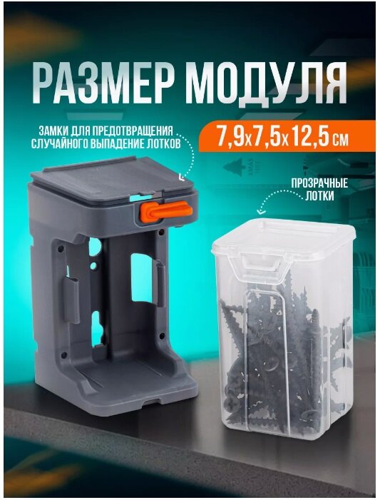 Органайзер Expert универсальный со съемным прозрачным боксом для строительных аксессуаров метизов гвоздей 1 лоток модуль с подставкой, крепеж на стену 296 ₽ Подробнее