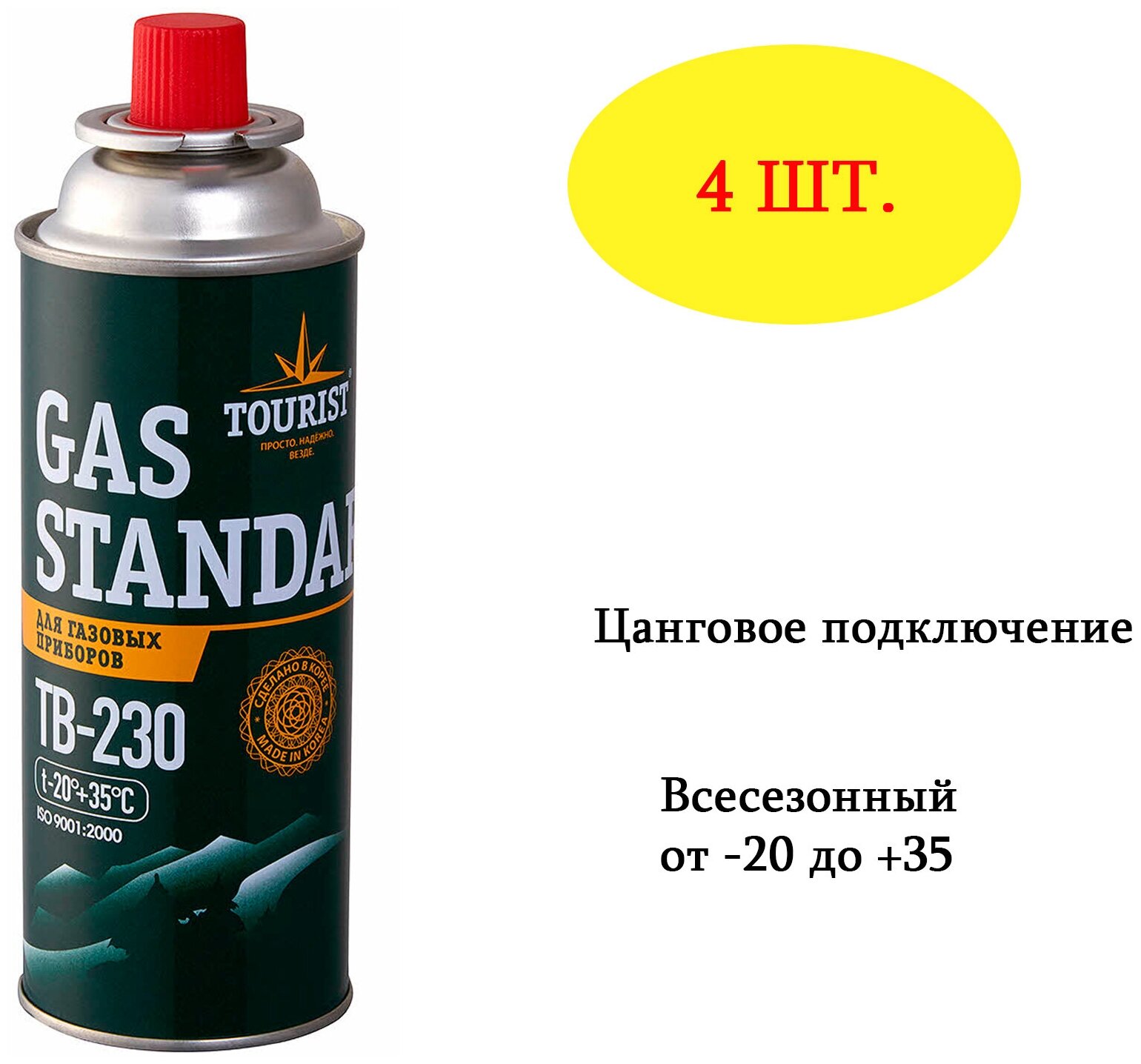 Газовый баллон Всесезонный газ "Стандарт", (комплект 4шт) баллончики с цанговым соединением для горелки, плитки, портативных газовых приборов (Газ 220 гр)