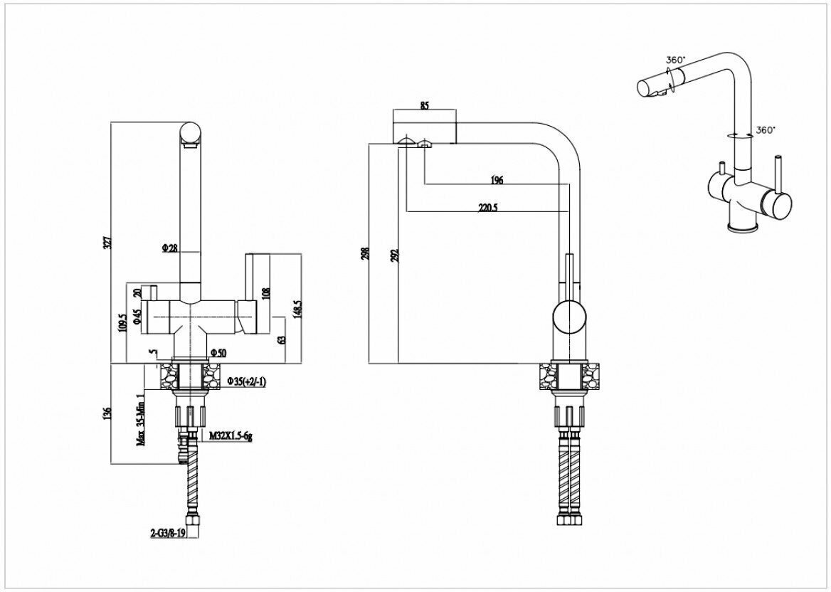 Смеситель для кухни Paulmark SKALEN из нержавеющей стали AISI 304, подключение к фильтру питьевой воды с отдельным каналом и выпуском, Г-образный, поворотный, на мойку, антрацит, Sk213020-401 26 900 ₽ Подробнее