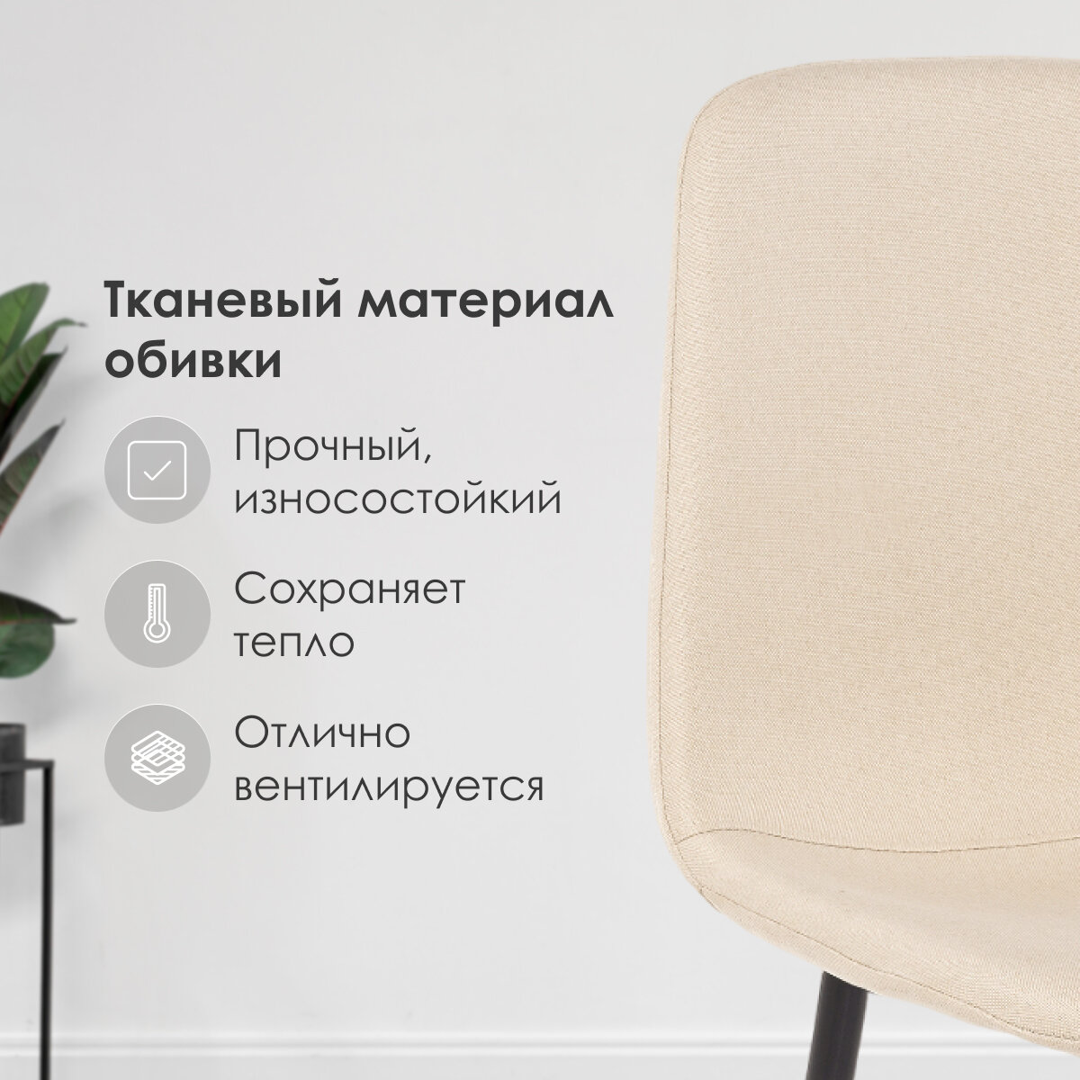 Стул Lilu woodville бежевый, ткань, металл, мягкое сиденье, без подлокотников