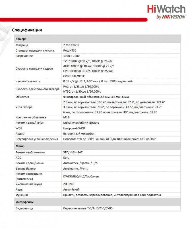 HiWatch Ds-t203a 2.8-2.8мм Hd-cvi Hd-tvi цветная корп.:белый (ds-t203a (2.8 Mm))