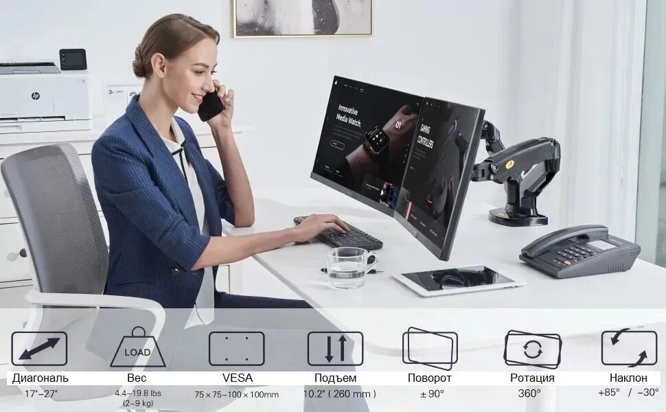 Подставки и крепления Двойной настольный кронштейн NB North Bayou F160 для мониторов 17-27" до 9 кг, белый