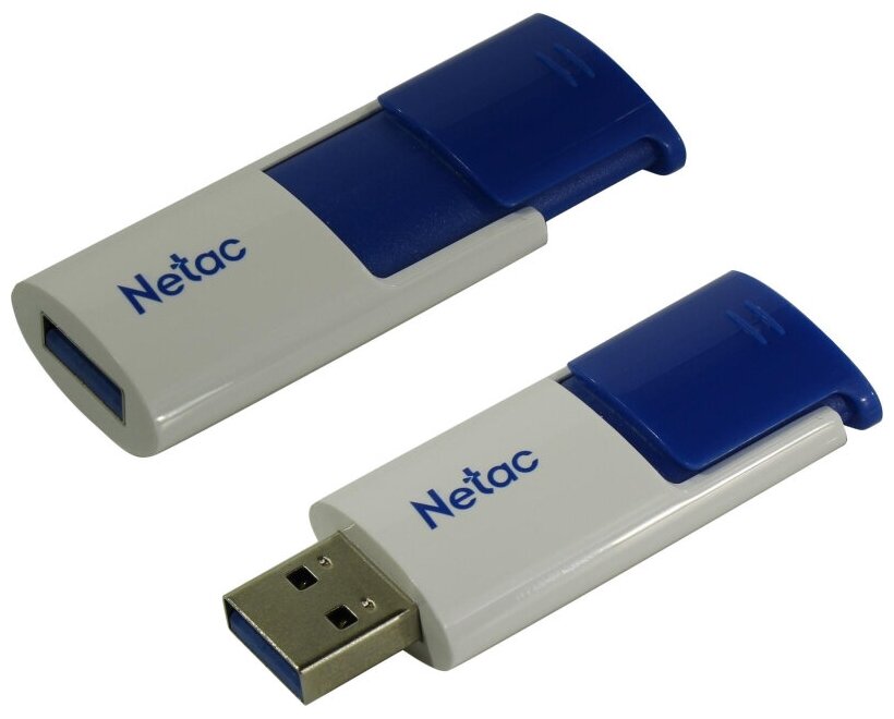 Память Flash USB 128 Gb Netac U182 Blue (NT03U182N-128G-30BL), USB3.0, сдвижной корпус, пластиковая бело-синяя