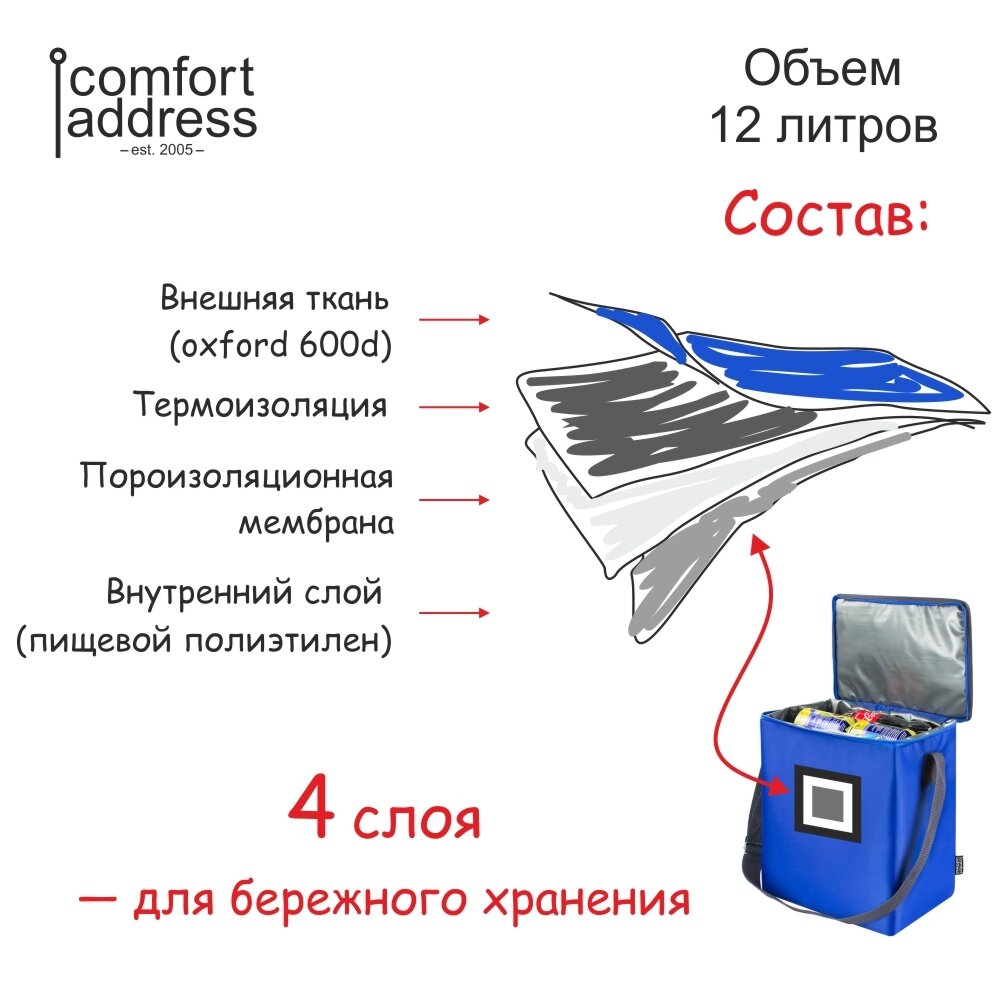 Термосумка 18л, 26x31x19 см, синяя, Comfort Address 1 655 ₽ Подробнее