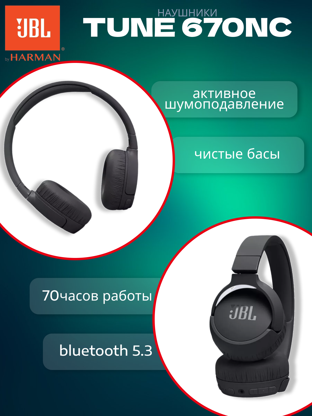 Беспроводные наушники JBL Tune 670NC, black