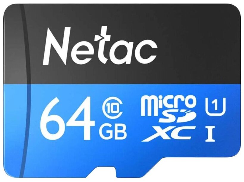 Карта памяти Netac microSD 64 ГБ Class 10, V10, A1, UHS Class 1, R 80 МБ/с, 1 шт., черный/синий