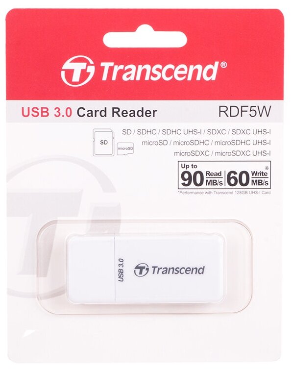 Считыватель внешн. Transcend Ts-rdf5w SDXC/SDHC/microSDXC/microSDHC USB 3.0 white Ts-rdf5w