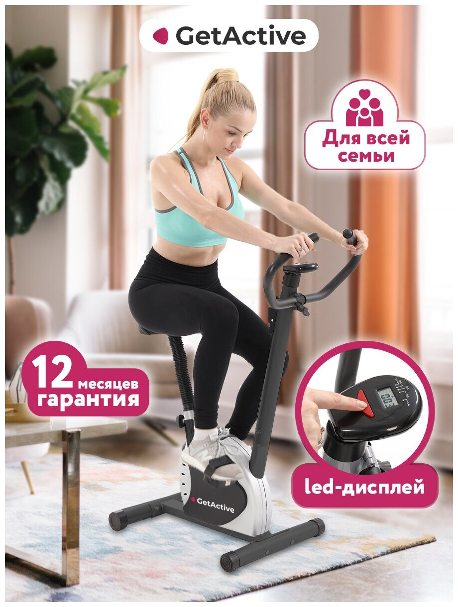 Велотренажеры Велотренажер GetActive Wheel ES-8001, для спорта дома, для ног, кардио, до 100 кг, серый