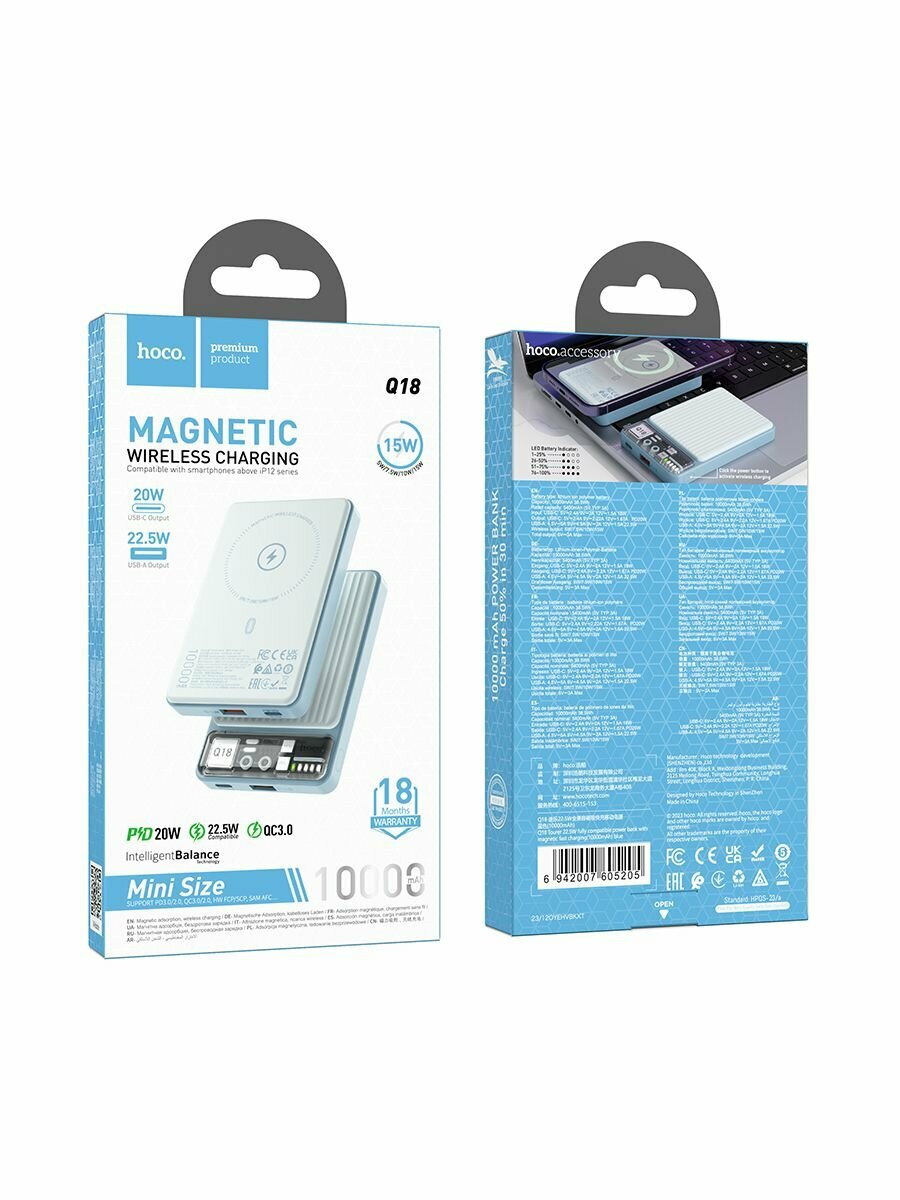 Универсальный Доп. Аккумулятор 10000mAh, J102, HOCO, выход: 1 USB (18W)+1 PD 20W, белый 1 500 ₽ Подробнее
