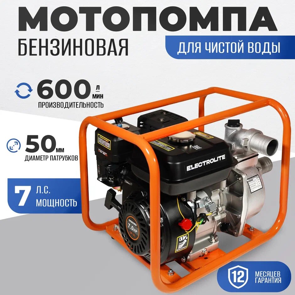 Мотопомпа бензиновая для чистой воды / помпа для прокачки чистой воды ELECTROLITE GP-50 7 л.с; 600 л/мин; 50 мм