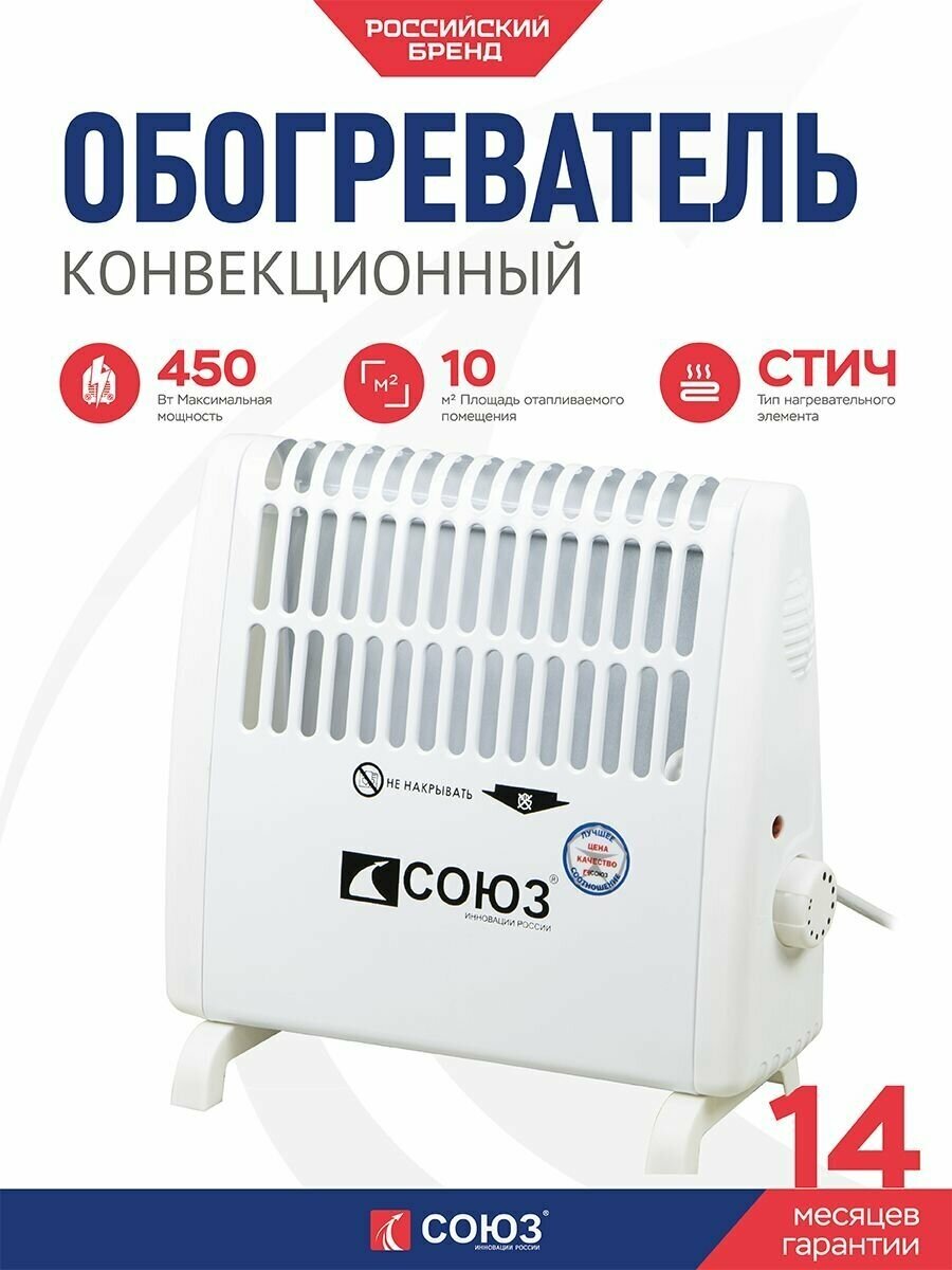 Конвекторный обогреватель 450Вт,стич,мех.термостат,напольн/настен,СОЮЗ