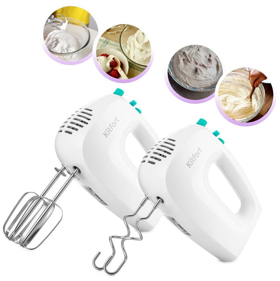 Миксер Kitfort ручной 250Вт белый/бирюзовый