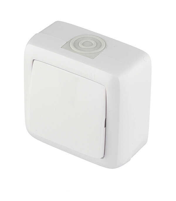 Переключатель одноклавишный "ALFA IP44" открытой установки белый ВА10-261 Hegel