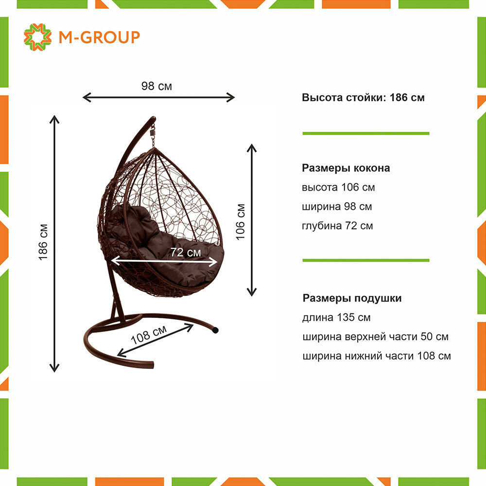 Подвесное кресло кокон M-group Капля ротанг коричевый+коричневая подушка