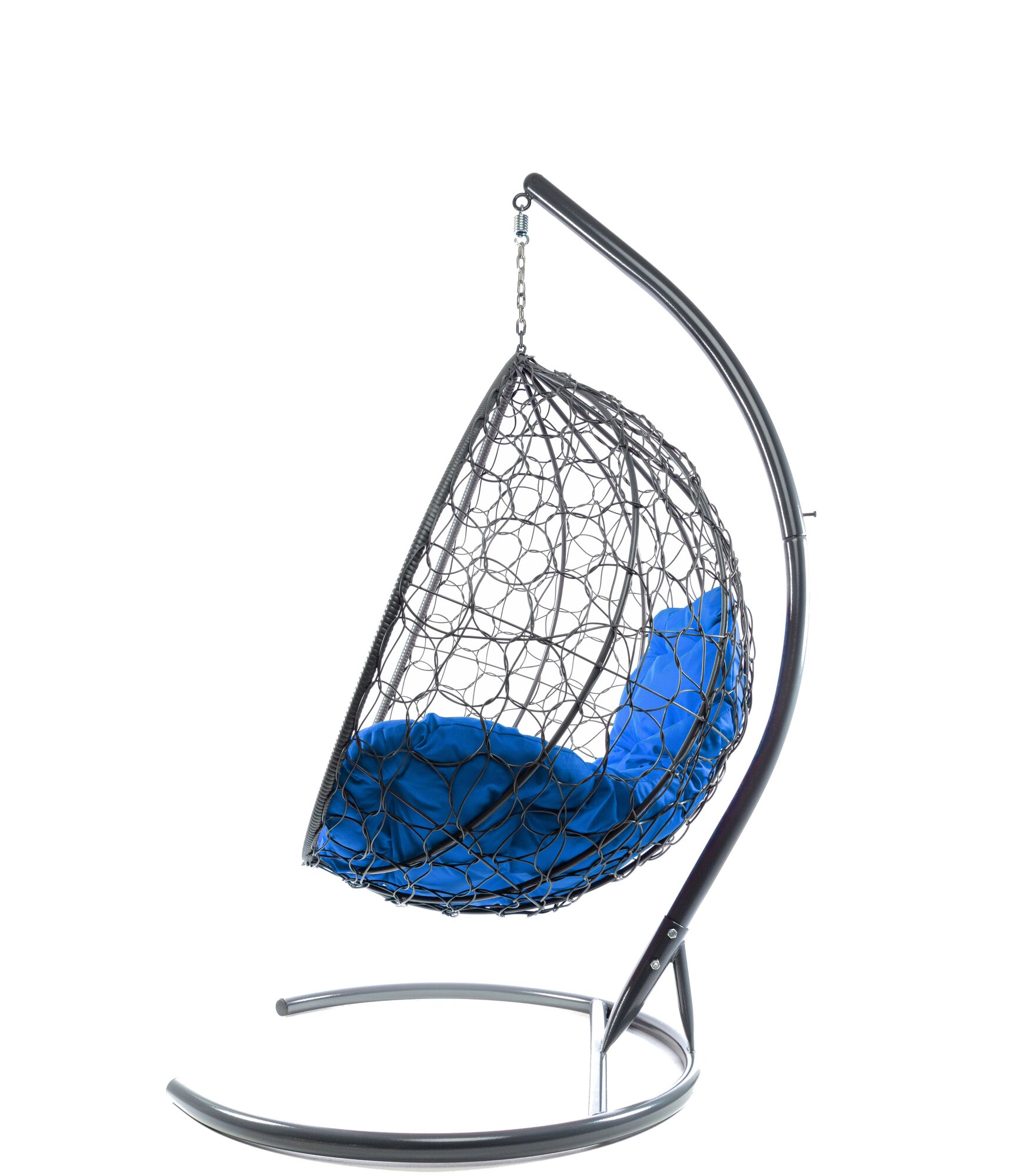 Подвесное кресло капля ротанг серое (без стойки), синяя подушка