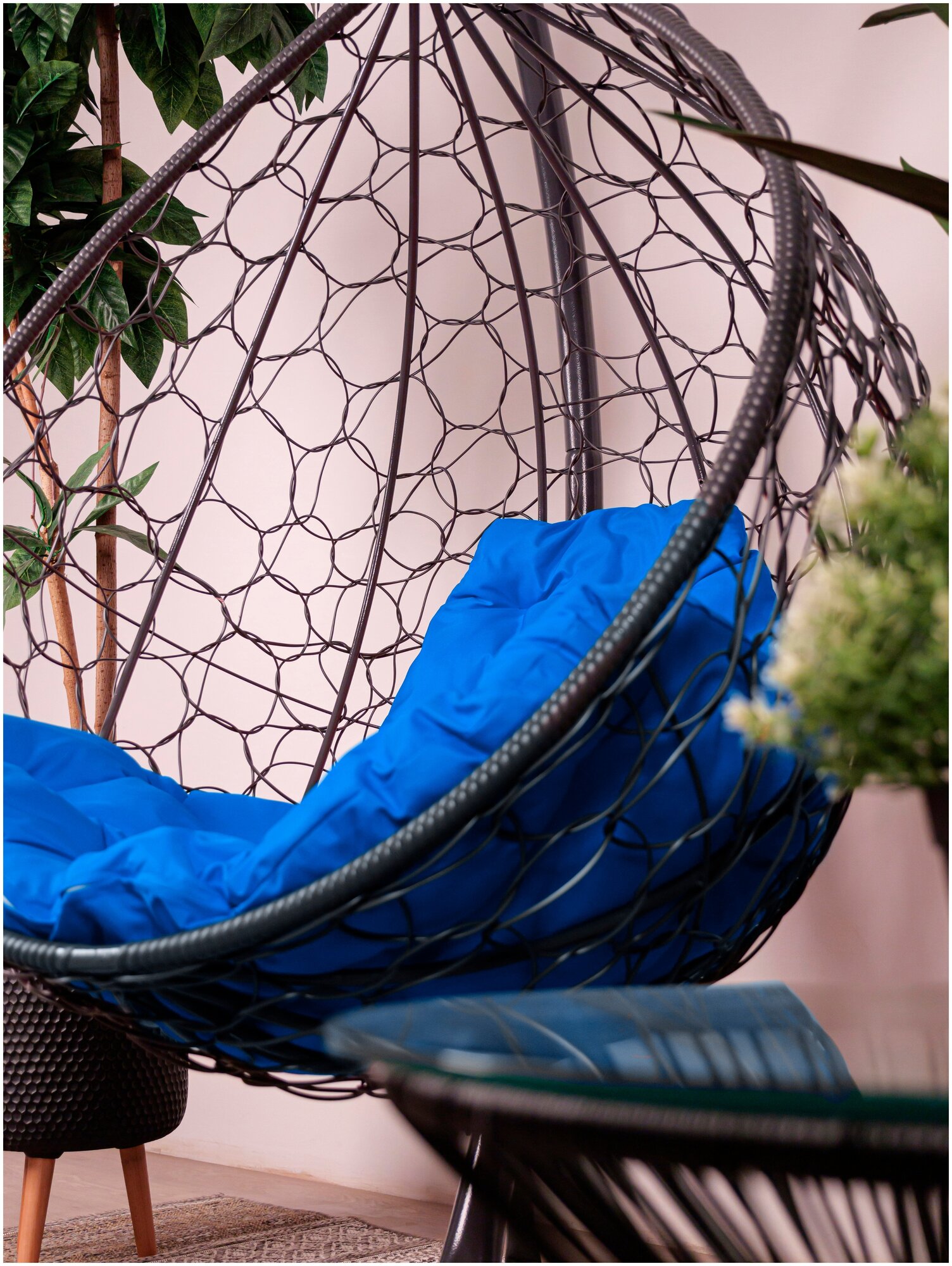 Подвесное кресло M-group капля с ротангом чёрное голубая подушка