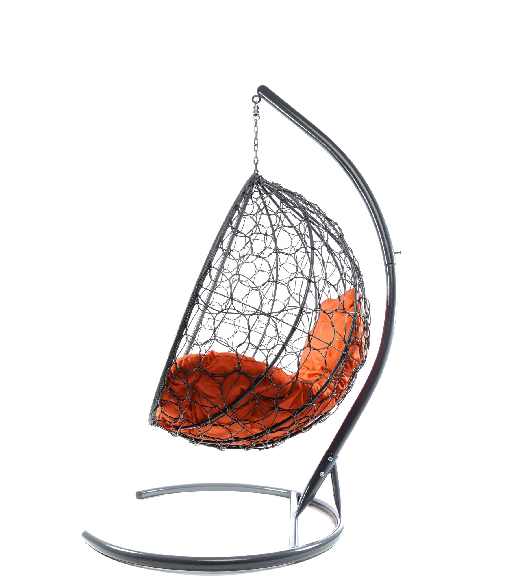 Подвесное кресло капля ротанг серое (без стойки), оранжевая подушка