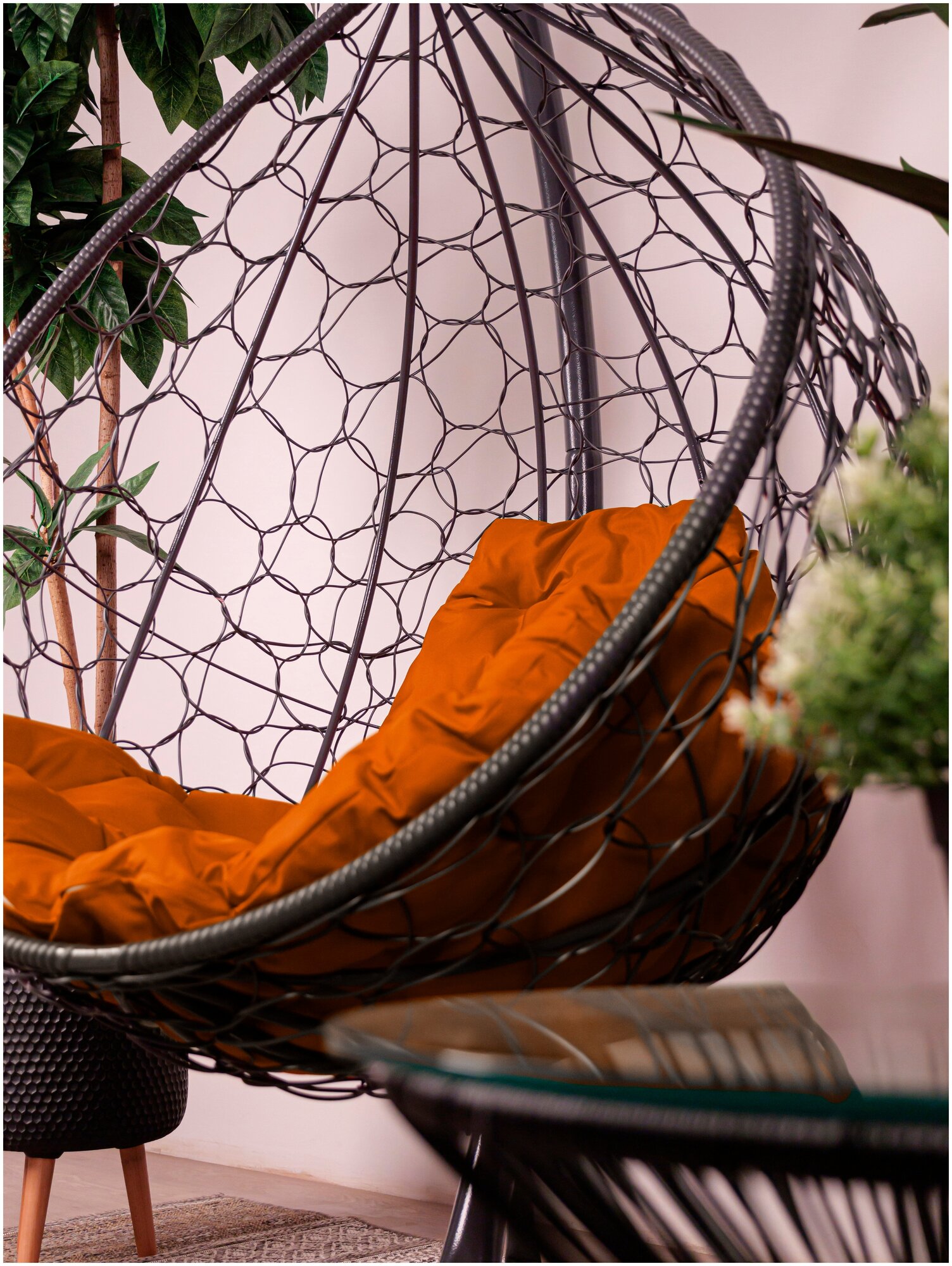 Подвесное кресло из ротанга "Капля" чёрное с оранжевой подушкой M-Group