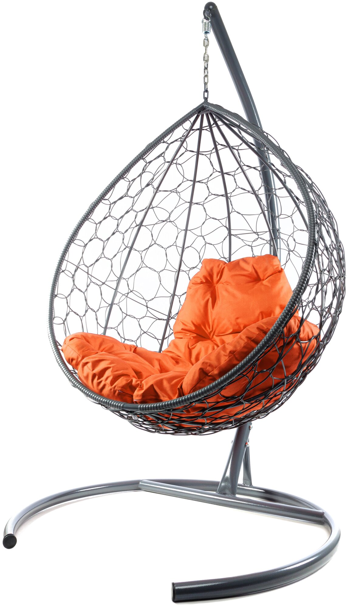 Садовая качель Подвесное кресло M-group капля с ротангом серое оранжевая подушка