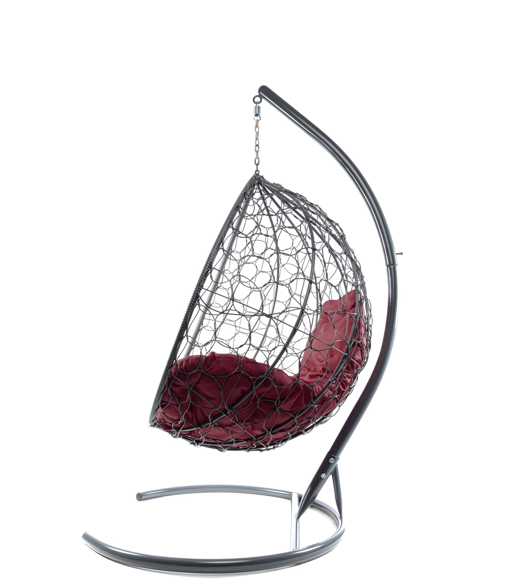 Подвесное кресло капля ротанг серое (без стойки), бордовая подушка