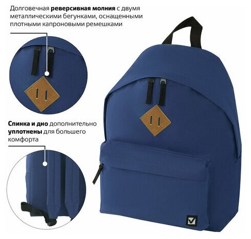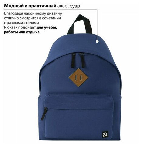 Рюкзак Brauberg , универсальный, сити-формат, один тон, синий, 20 литров, 41х32х14 см