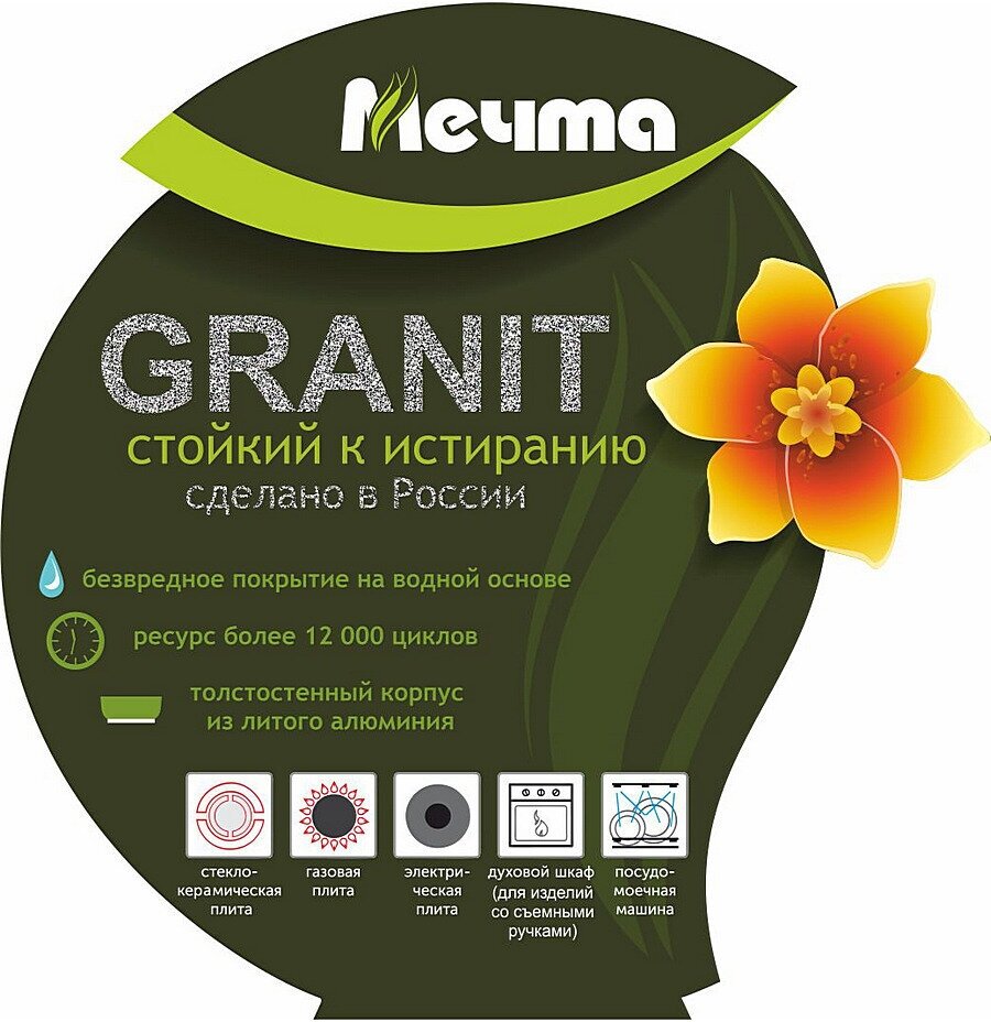 Сковородки Сковорода с гранитным антипригарным покрытием крышкой и съемной ручкой 28 см Мечта