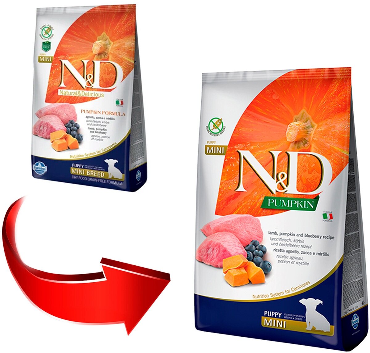 FARMINA DOG N&D GRAIN FREE PUMPKIN PUPPY MINI LAMB & BLUEBERRY беззерновой для щенков маленьких пород с ягненком, черникой и тыквой (0,8 кг)