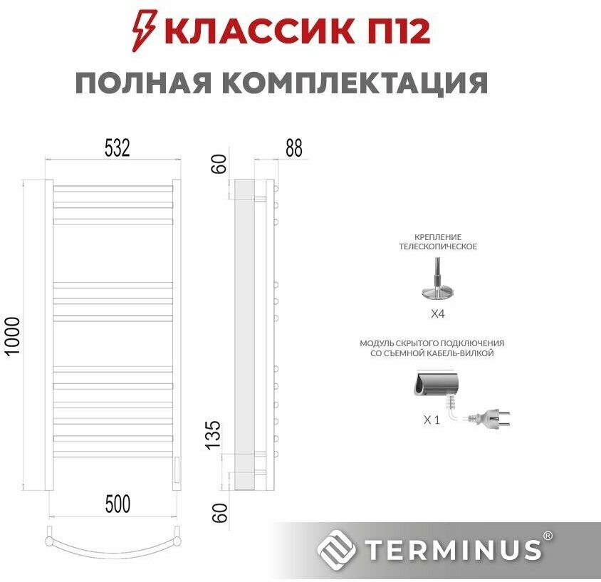 Электрический полотенцесушитель Terminus Классик П12 500х1000