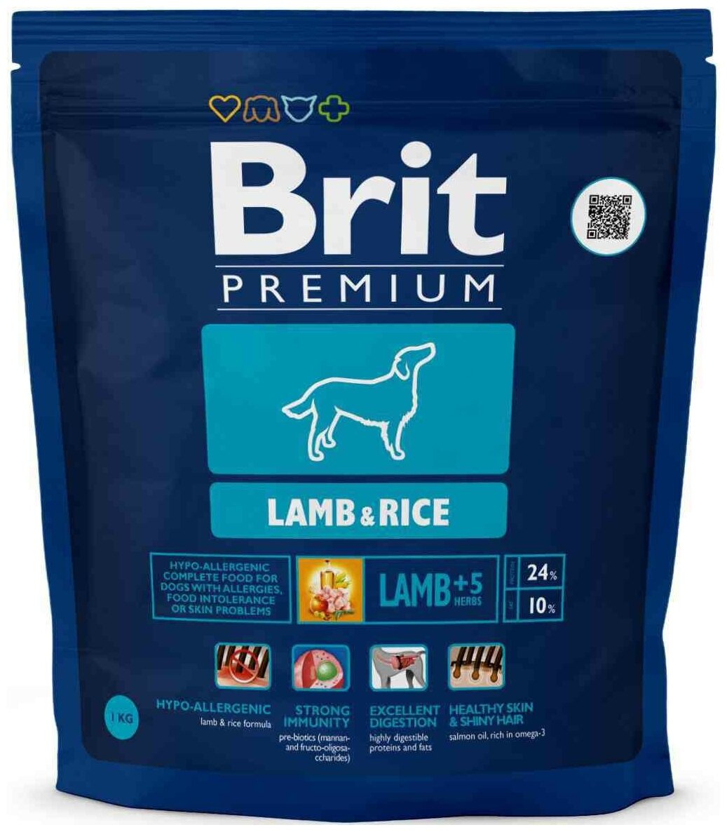Корм для собак Корм сухой для собак BRIT Premium Lamb & Rice гипоаллергенный, для всех пород, 1кг