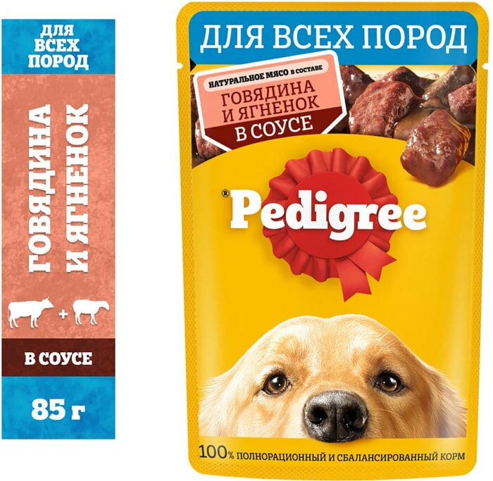 Pedigree Паучи для взрослых собак всех пород с говядиной и ягненком в соусе 85г 10222568 0,085 кг 43497 (18 шт)