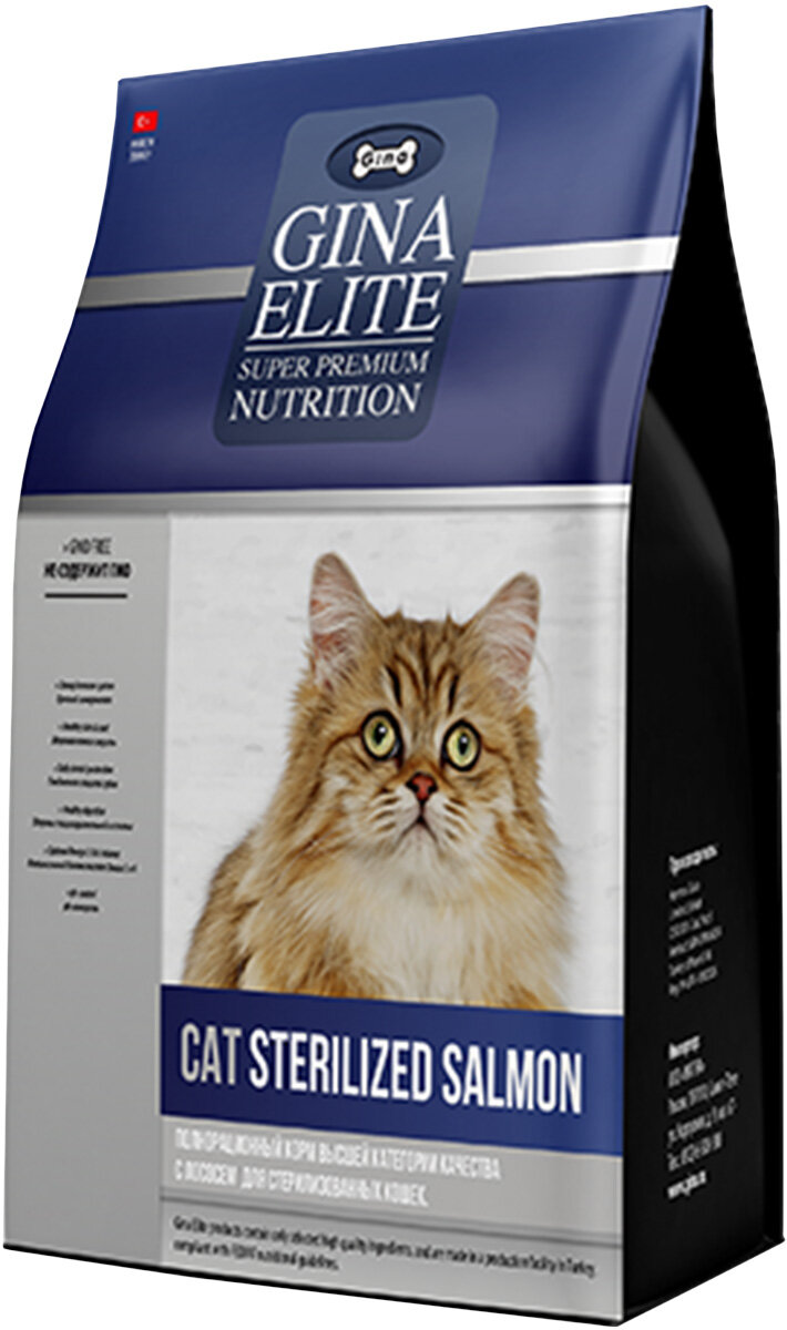 Корм для кошек GINA ELITE ADULT CAT STERILIZED SALMON для взрослых кастрированных котов и стерилизованных кошек с лососем (3 кг)
