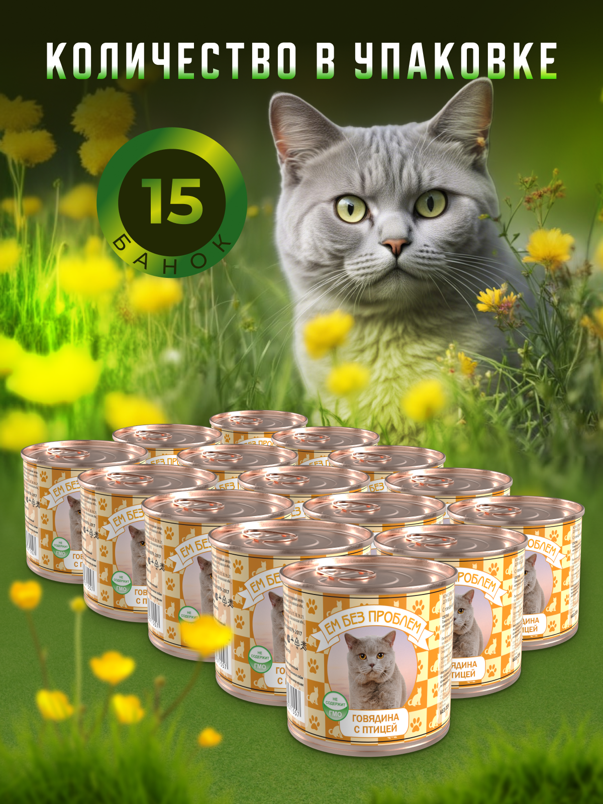 Корм для кошек Влажный корм для кошек Ем Без Проблем Говядина с птицей 15 шт х 250 г