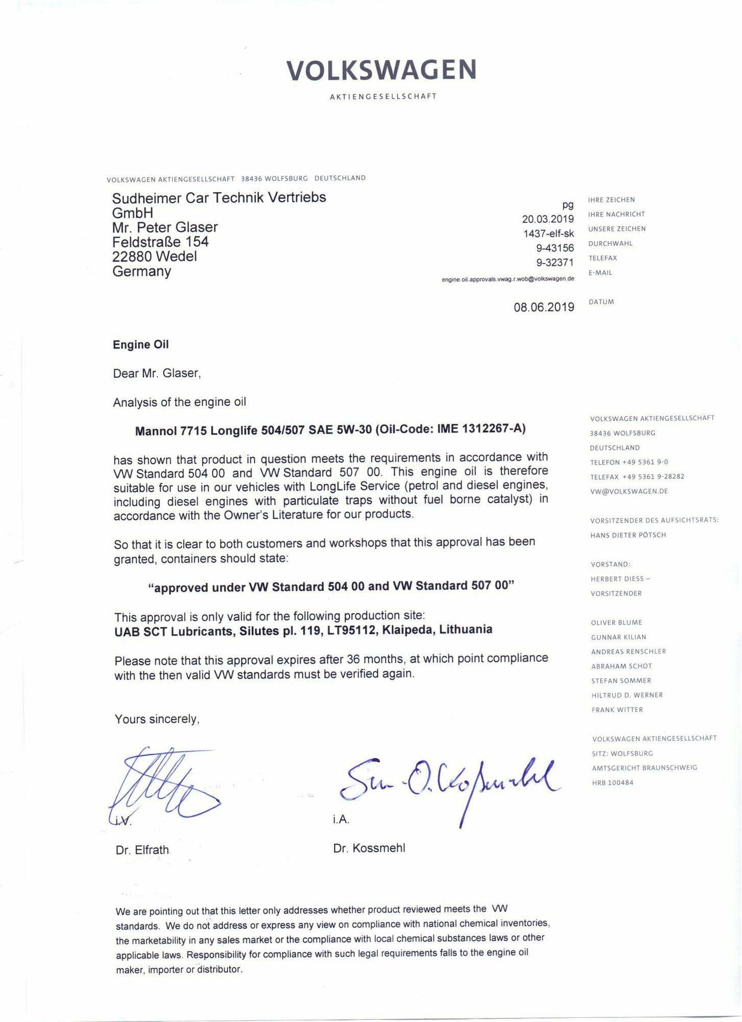 | Допуски Audi, VW, Skoda, SEAT | 504.00/507.00 |