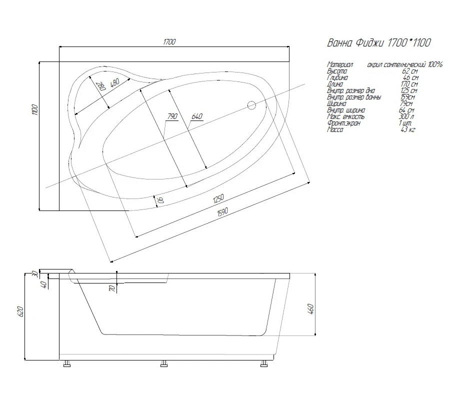 Ванна Aquatek Фиджи 170х110 FID170-0000001 белая левая 17 440 ₽ Подробнее