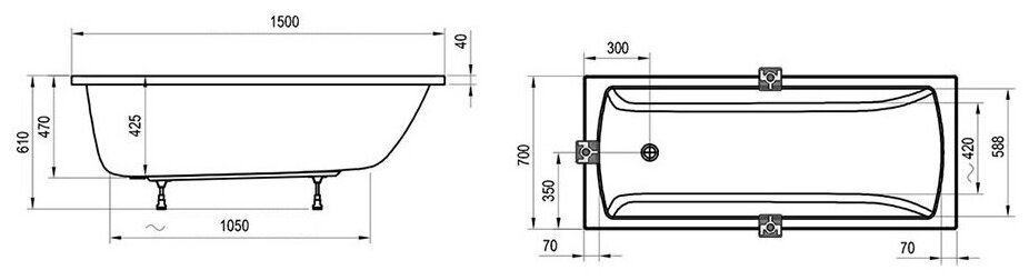 Акриловая ванна Ravak Classic II 1500x700 CC31000000
