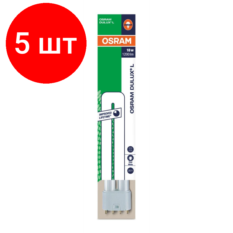 Лампочки Комплект 5 штук, Лампа люминесцентная КЛЛ неинтегрированная OSRAM CFL DULUX L 18W/840 2G11